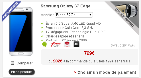 - the Galaxy S7 Edge is available as cash payment to 799 €